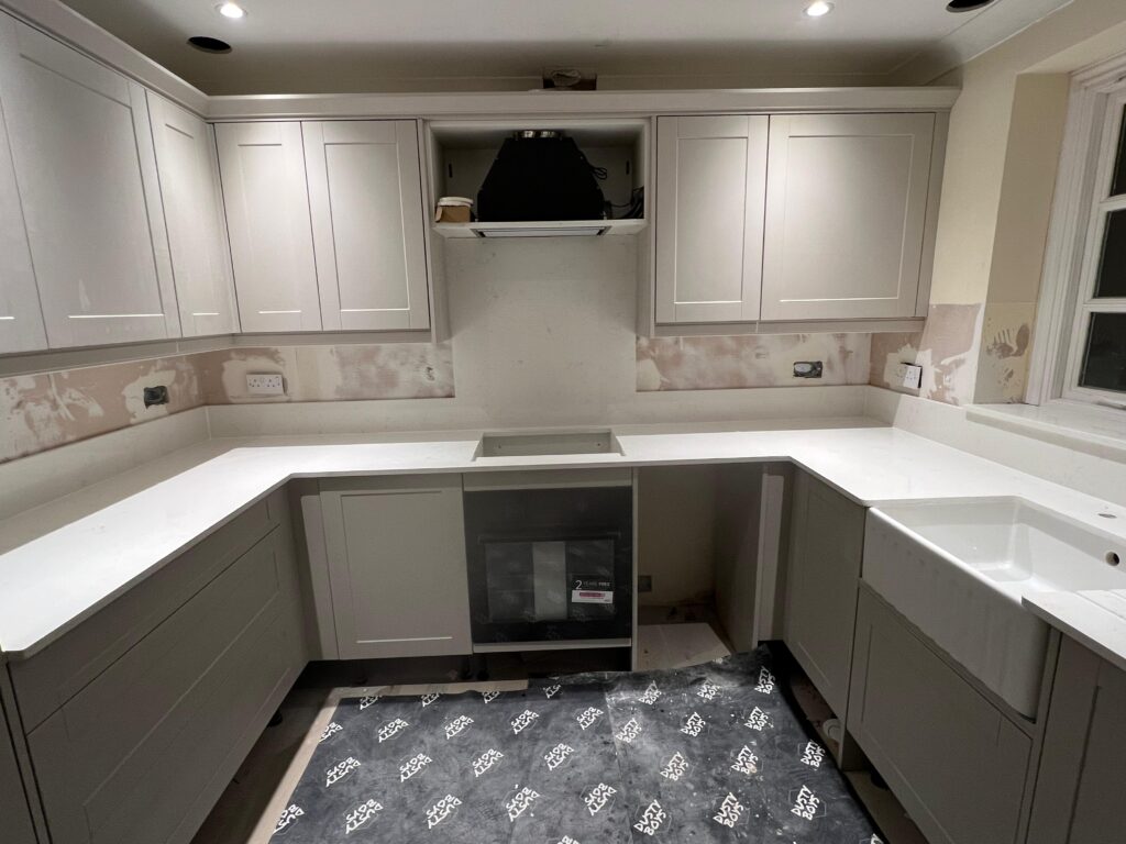 Premium-quality cabinets and durable worktops fitted with precision for a modern and functional finish.